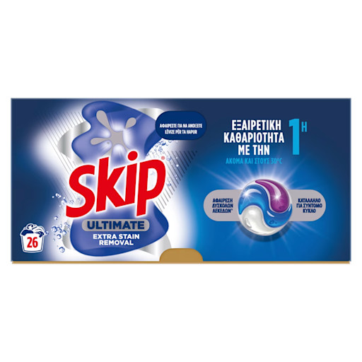 H μεγάλη γκάμα προϊόντων Skip καλύπτει κάθε ανάγκη σας για πλύσιμο στο πλυντήριο ρούχων.
